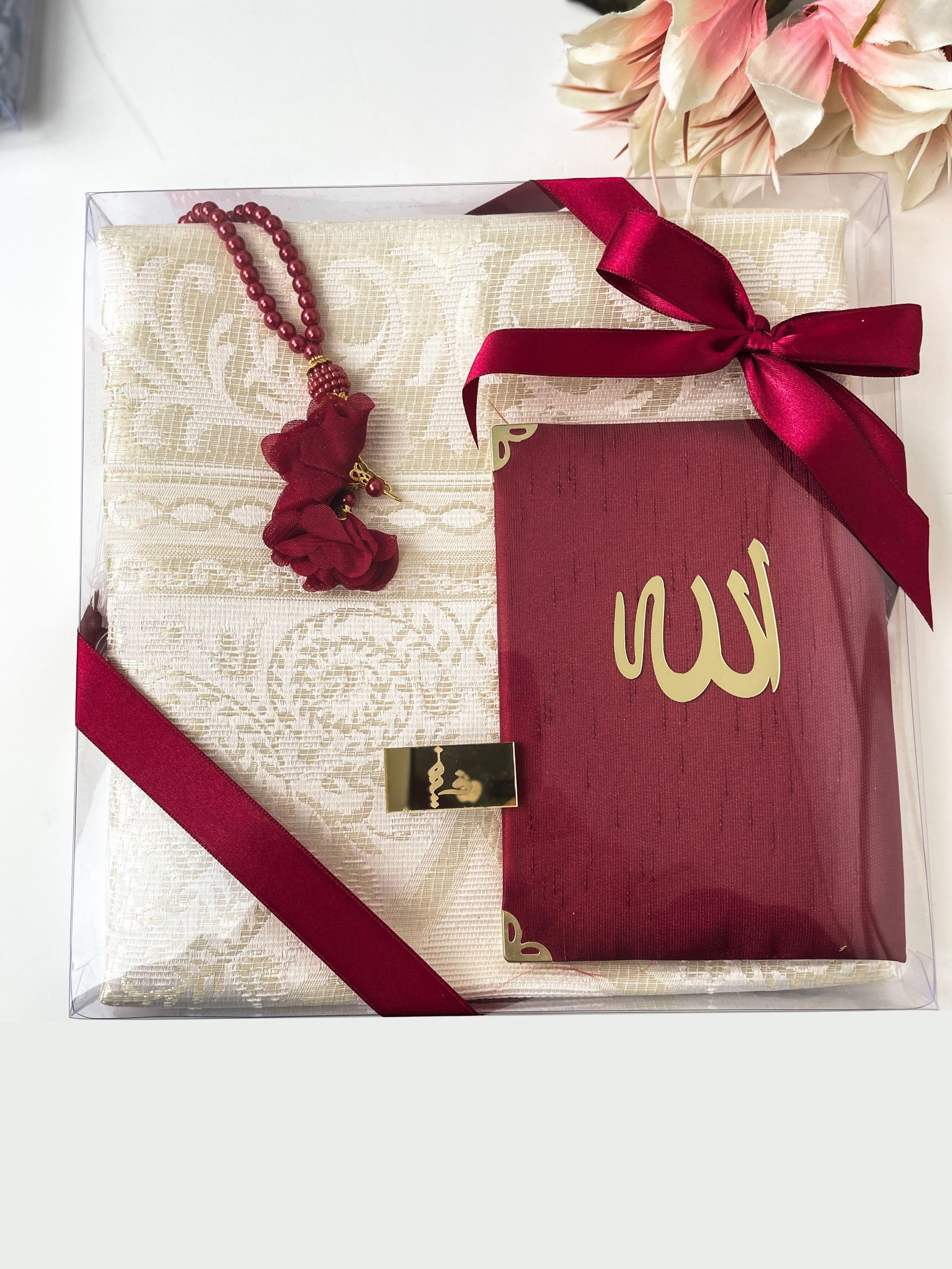 Gift Set with Prayer Mat / Musallah – Tasbih /Misbah – Surah Booklet